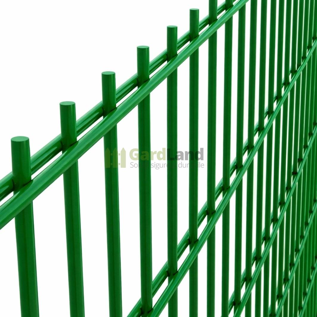Designul dublu 2D conferă rigiditate și rezistență sporită, fiind ușor de montat și întreținut. Finisajul verde RAL 6005 adaugă un aspect elegant și natural, integrându-se perfect în orice curte sau grădină. Este potrivit atât pentru împrejmuiri rezidențiale, cât și pentru spații industriale sau proiecte de securitate.